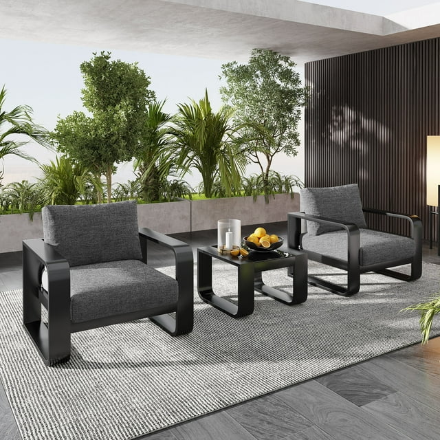 Kumix 3-pieces Aluminum Frame Patio Furniture With 6.7" Thick Cushion And Coffee Table, All Weather Use Olefin fabric Outdoor Chair, Gray And Black quantity
