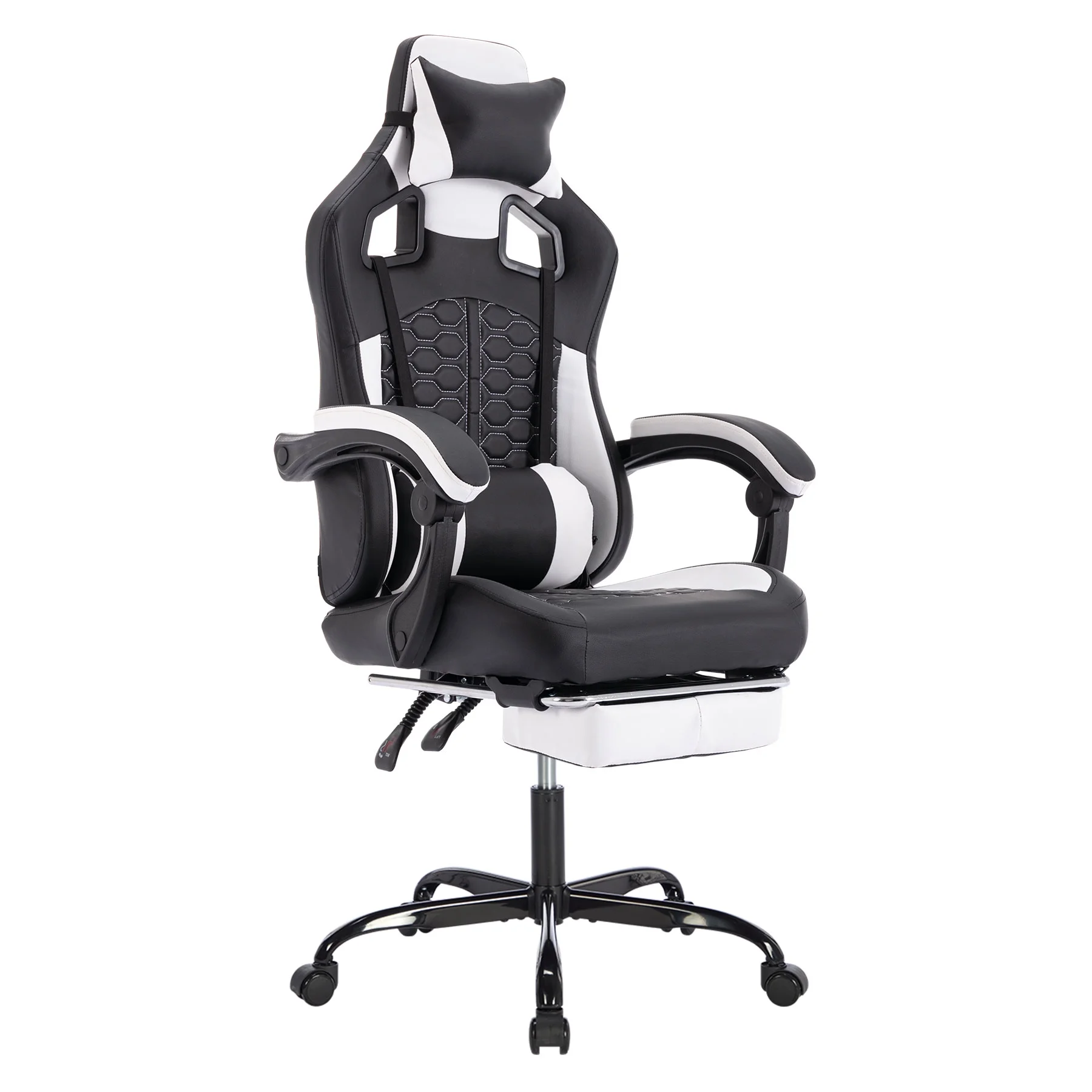 You're viewing: Kumix Gaming Chair with Massage,Ergonomic PC Gaming Chair with Footrest Comfortable Headrest and Lumbar Support,High Back PVC Leather,300LBS (Black White)$185.99