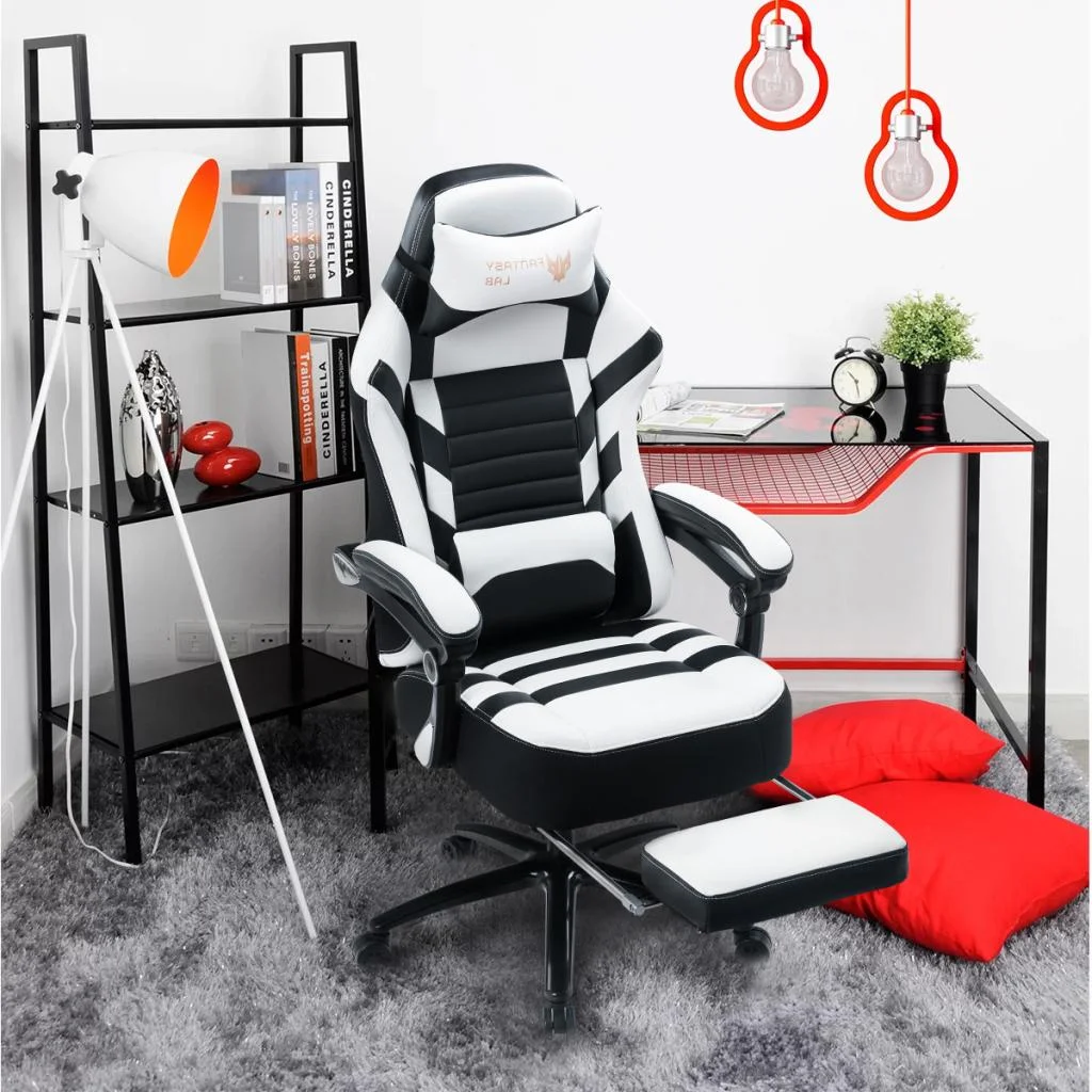 Kumix Height Adjustable Swivel Racing Office Computer Ergonomic Video Game Chair, White