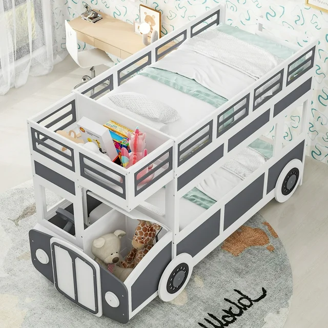 You're viewing: Kumix Twin over Twin Bus-shaped Bunk Bed with Wheels and Storage, Kids Bunk Bed with Safty Rail and Ladder for Boys&Girls, Wooden Bunk Bed Frame for Bedroom, Space-Saving, Gray+White$799.99